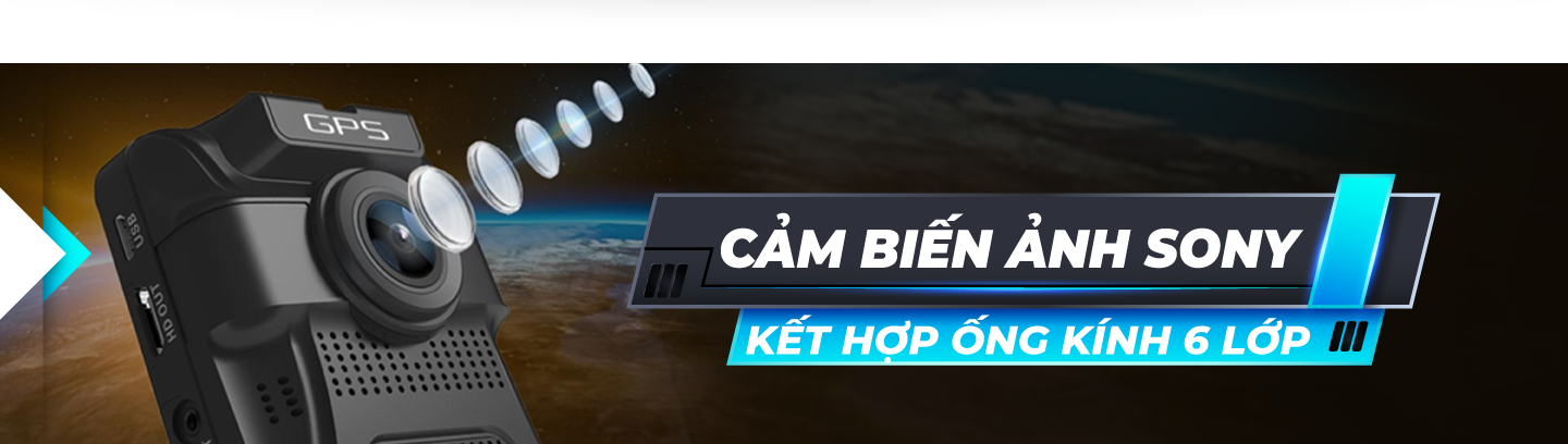 Phụ kiện ô tô camera hành trình VietMap C63 được trang bị cảm biến hình ảnh Sony, kết hợp với ống kính ghi hình 6 lớp độ phân giải Full HD, giúp ghi lại rõ nét ngày & đêm.