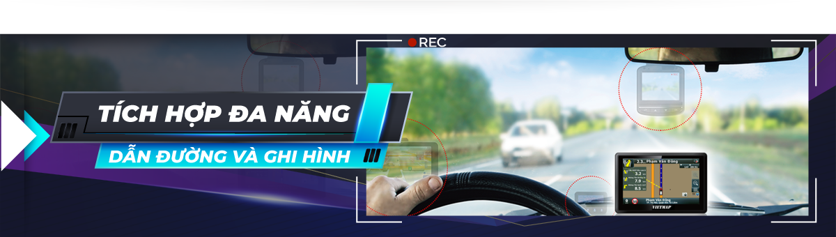 Thiết bị đa chức năng VIETMAP W810 cho phép vừa dẫn đường vừa làm camera hành trình, hỗ trợ giúp tài xế lái xe dễ dàng hơn.