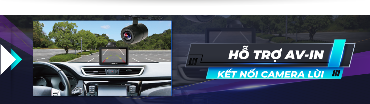 VIETMAP W810 có cổng Av-in dùng để kết nối camera lùi trên xe, màn hình W810 sẽ tự động chuyển sang màn hình camera lùi khi trả số về số de “R”.