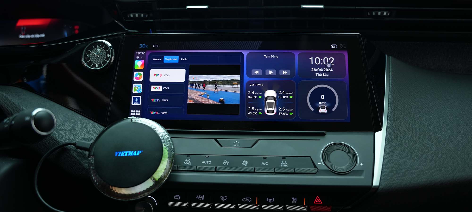 Ảnh. Theo dõi đồng thời thông tin áp suất lốp và giải trí chỉ với VIETMAP BS10.