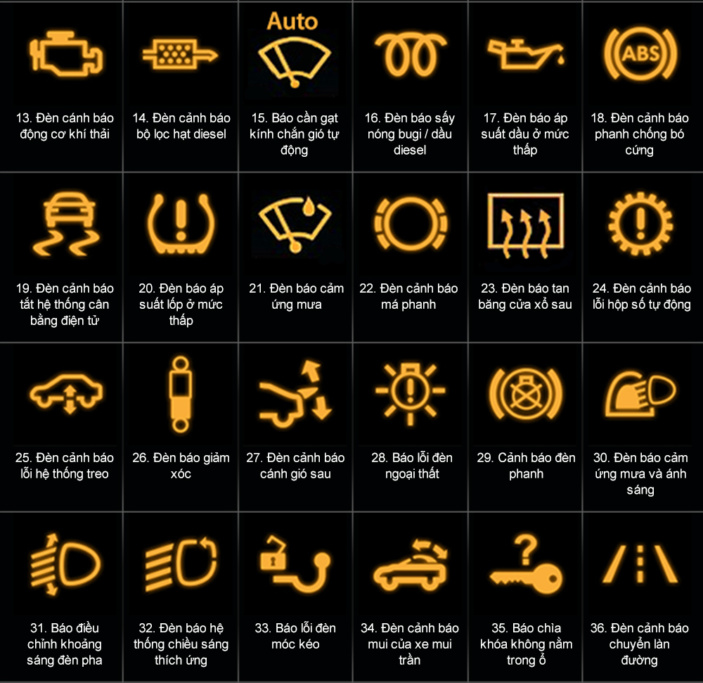 Các ký hiệu đèn cảnh báo trên xe ô tô