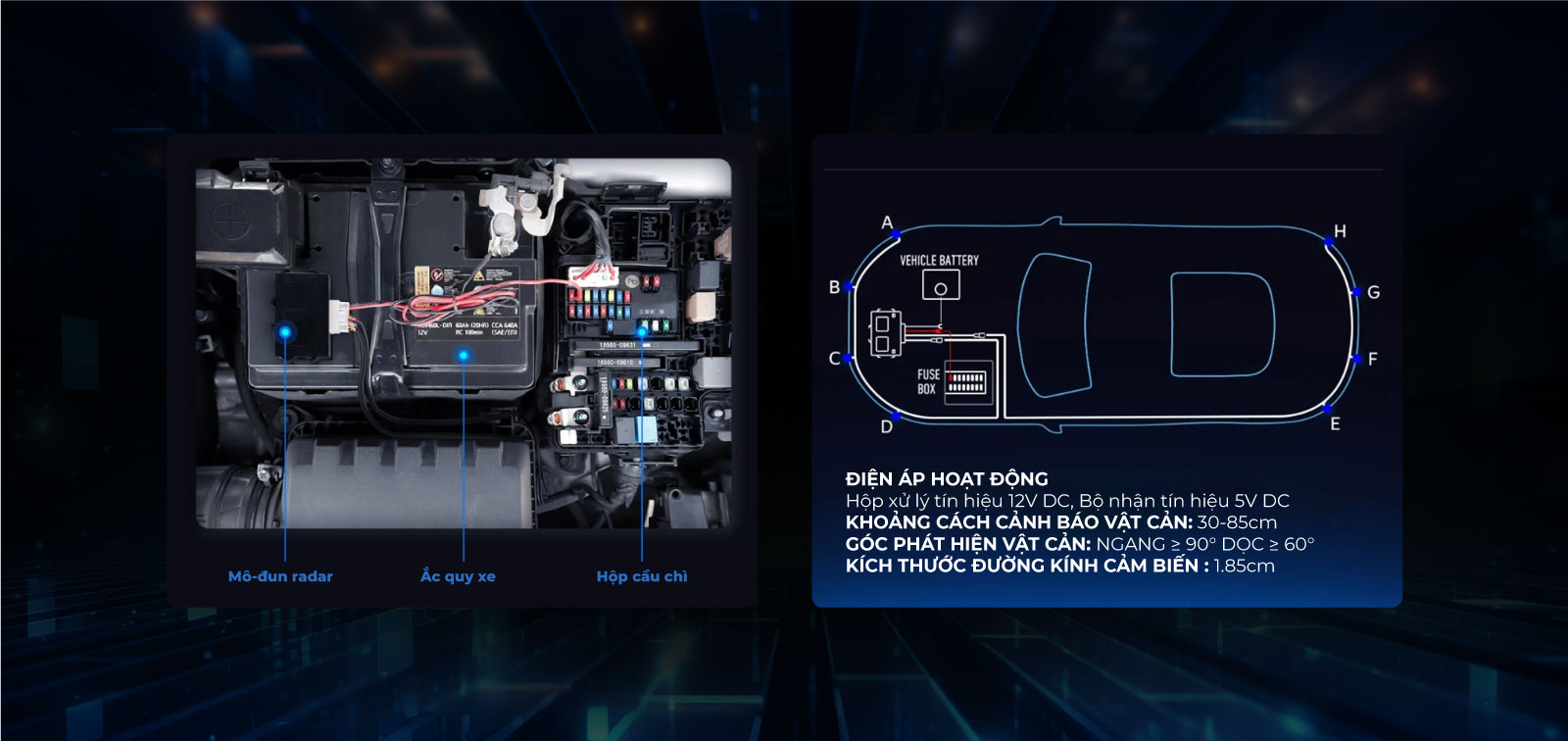 3 cấp độ cảnh báo giúp cho tài xế nhận biết rõ ràng hơn. Các khoảng cách cảnh báo từ 30cm - 85cm