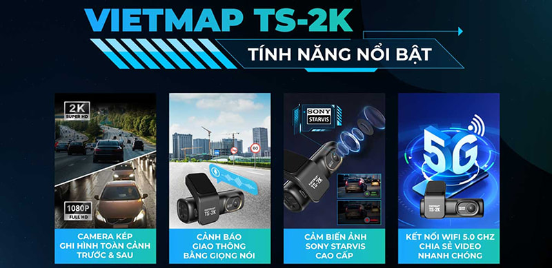 Nếu bạn đang có nhu cầu tìm mua camera hành trình nhỏ gọn, ghi hình chất lượng cao mà vẫn đảm bảo tính thanh lịch, sang trọng cho nội thất xe thì VIETMAP TS-2K là sự lựa chọn hoàn hảo. Thực tế, thiết bị có khả năng ghi hình toàn cảnh trước sau đạt độ phân giải Super HD 2K ở camera trước và Full HD 1080p ở camera sau.