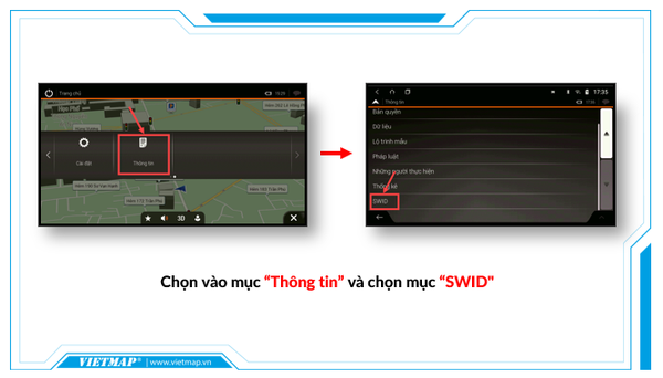 Các thiết bị khác có thể hiện số “SWID” thì cần xác minh thêm từ phía hệ thống VIETMAP, khách hàng làm theo các bước ở mục “Kiểm tra thông qua tổng đài VIETMAP”.