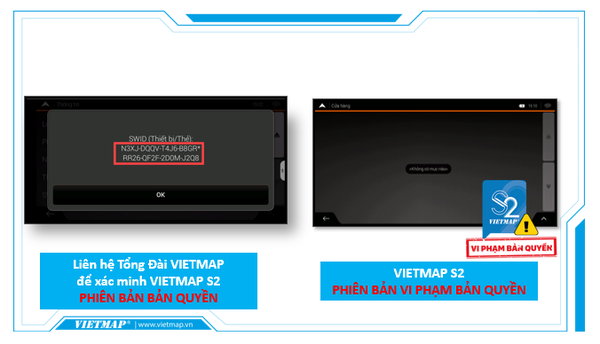 II. CÁCH NHẬN BIẾT & PHÂN BIỆT VIETMAP S2 BẢN QUYỀN VÀ PHIÊN BẢN BẺ KHOÁ