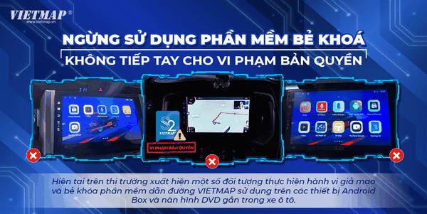 Phần mềm VIETMAP S2 được ra mắt nhằm hướng tới là phần mềm dẫn đường ô tô chuyên dụng cho tài xế Việt Nam với nhiều tiện ích hỗ trợ lái xe thông minh.Tuy nhiên trên thị trường xuất hiện một số đối tượng thực hiện hành vi giả mạo và bẻ khóa phần mềm dẫn đường VIETMAP S2 sử dụng trên các thiết bị Android box và màn hình DVD gắn trong xe ô tô.