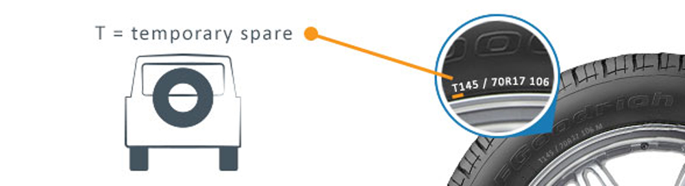- Lốp T hay Temporary Space (như T145/70R17 106M) là loại lốp xe tạm thời, thường được sử dụng như lốp dự phòng trên một số xe, có thể thay vào, được sử dụng trong một thời gian ngắn khi lốp chính gặp sự cố