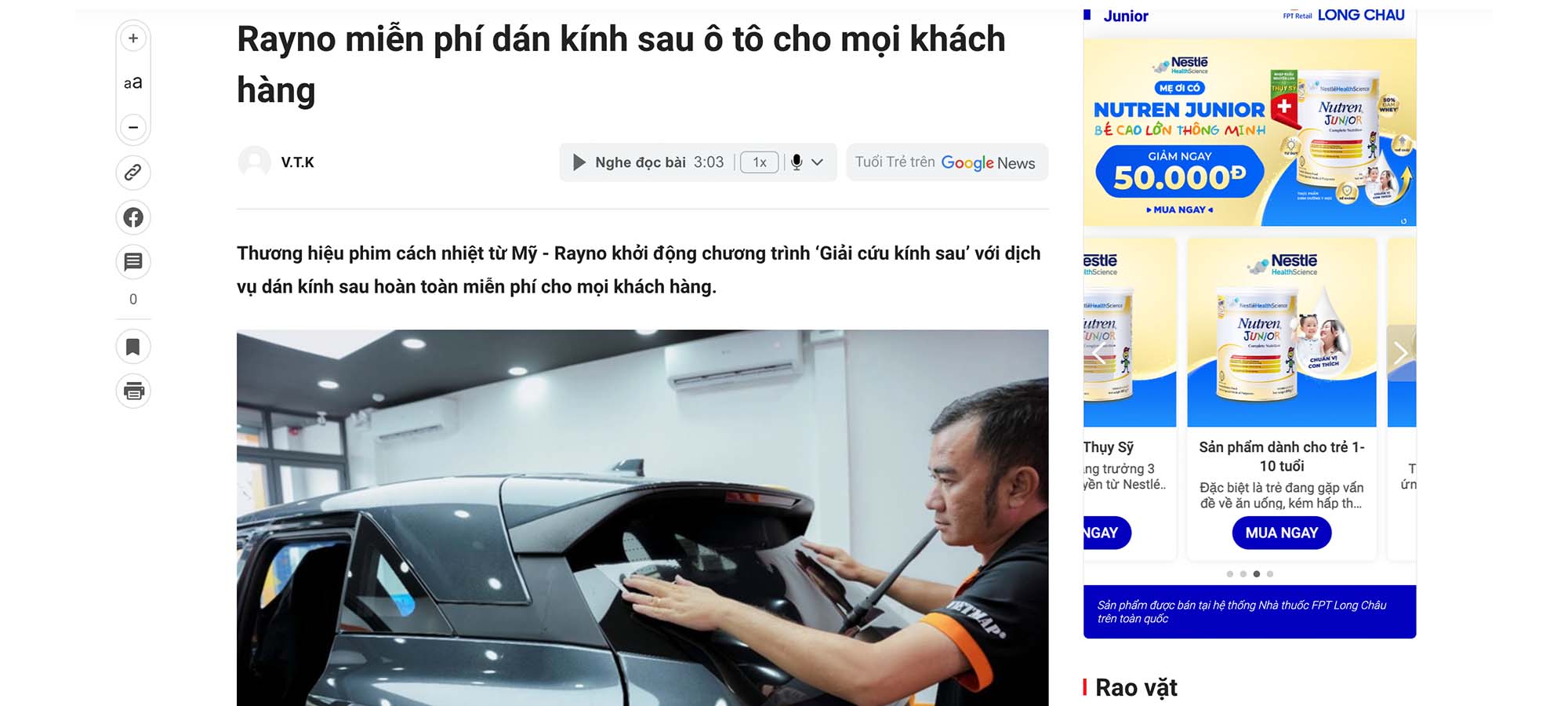 Chương trình dán phim miễn phí được truyền thông trên báo Tuổi trẻ