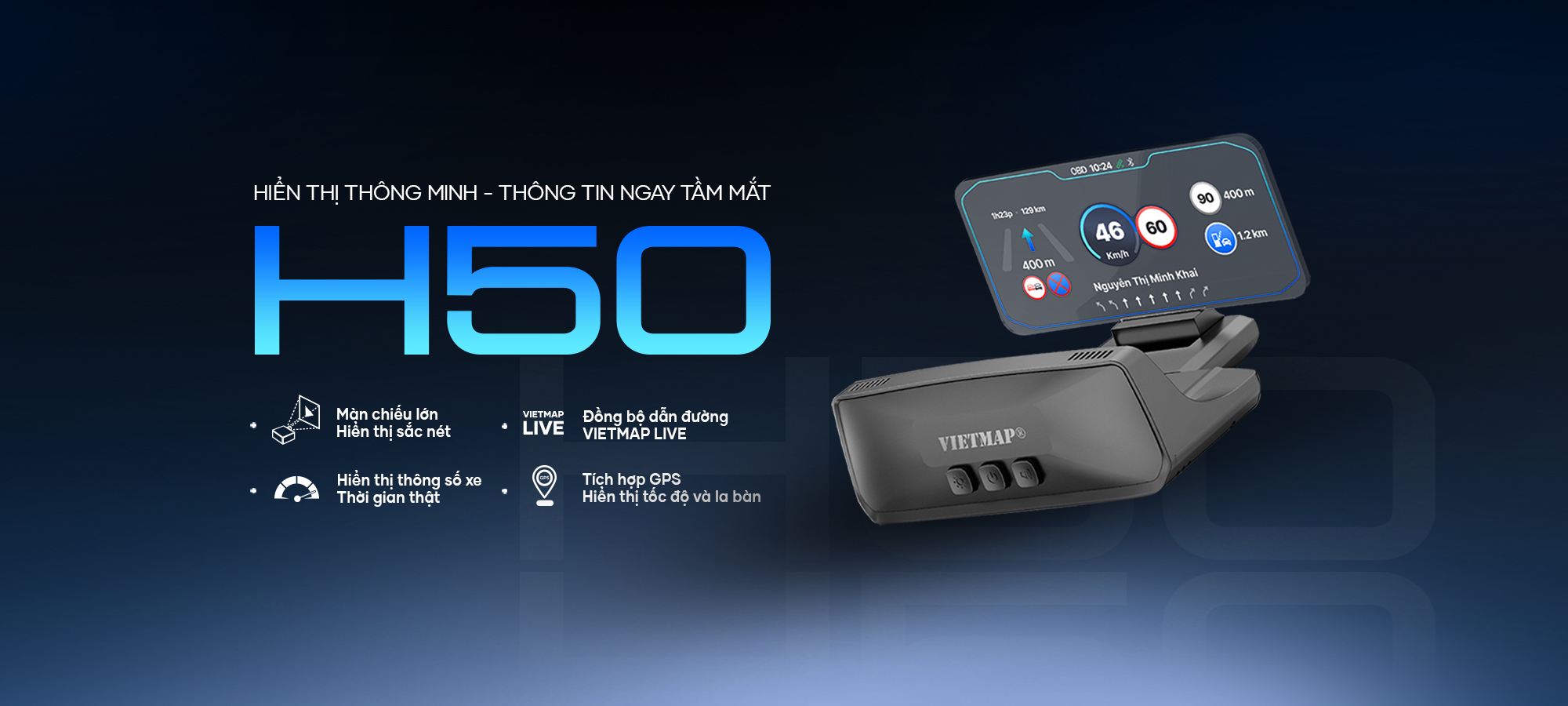 Với phương châm “Lấy người dùng làm trung tâm”, Vietmap H50 được phát triển như một bước tiến mới trong dòng sản phẩm màn hình hiển thị thông minh dành cho ô tô. Sở hữu thiết kế tinh gọn, độ hiển thị sắc nét cùng khả năng kết nối dữ liệu thông minh, H50 không chỉ là một thiết bị hiển thị, mà còn là người bạn đồng hành giúp người lái tập trung và tận hưởng trọn vẹn trải nghiệm lái xe tiện nghi, hiện đại.
