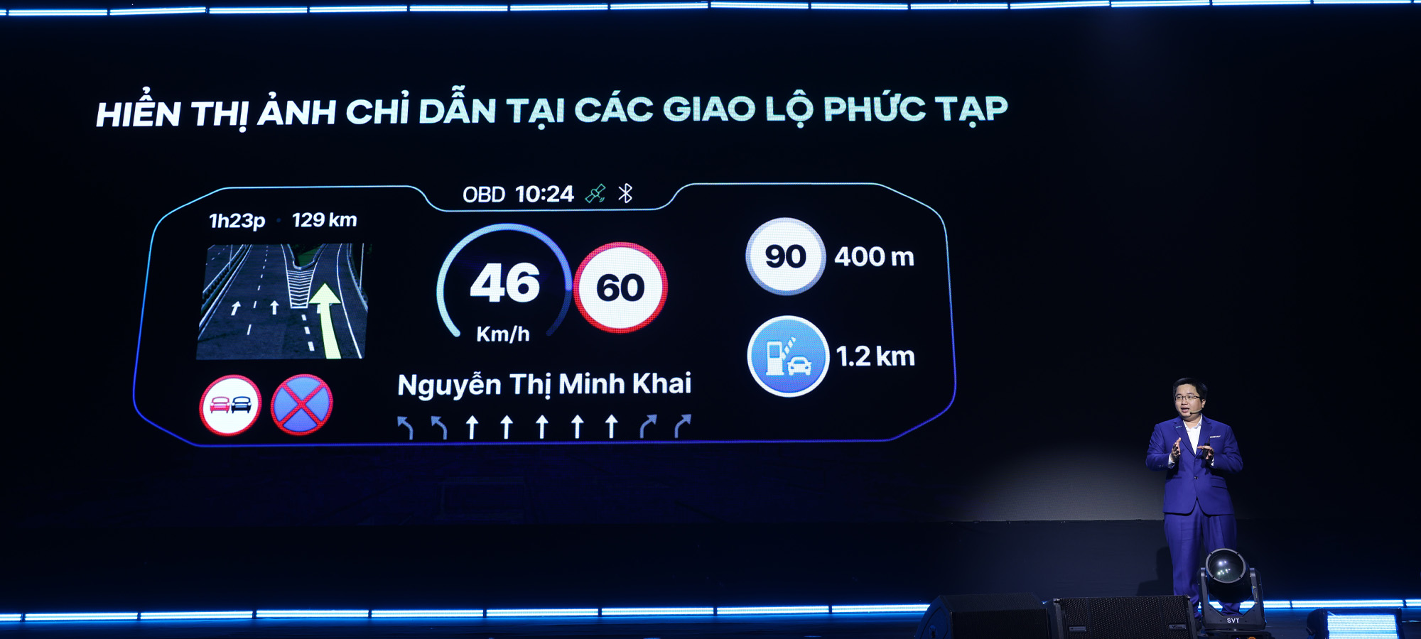Nổi bật trong chế độ dẫn đường, màn hình H50 hiển thị mũi tên hướng đi ngay tầm mắt và mô phỏng hình ảnh giao lộ phức tạp, giúp người lái không cần cúi nhìn điện thoại hay màn hình trung tâm. Thiết kế này vừa tăng trải nghiệm tiện nghi, vừa nâng cao an toàn khi di chuyển trên các tuyến đường chưa quen mà không không bị phân tâm khi cầm lái.