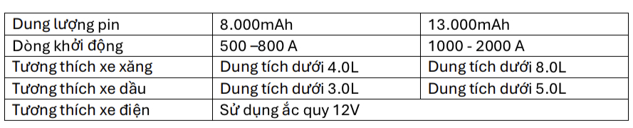 Với hai dòng là 13.000mAh và 8.000mAh để phù hợp với nhiều dòng xe trên thị trường.