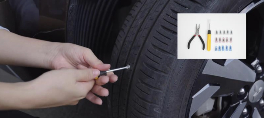 1. Gỡ đinh: Dùng tua vít hoặc kìm có sẵn trong bộ kit để gắp đinh ra khỏi bánh xe.