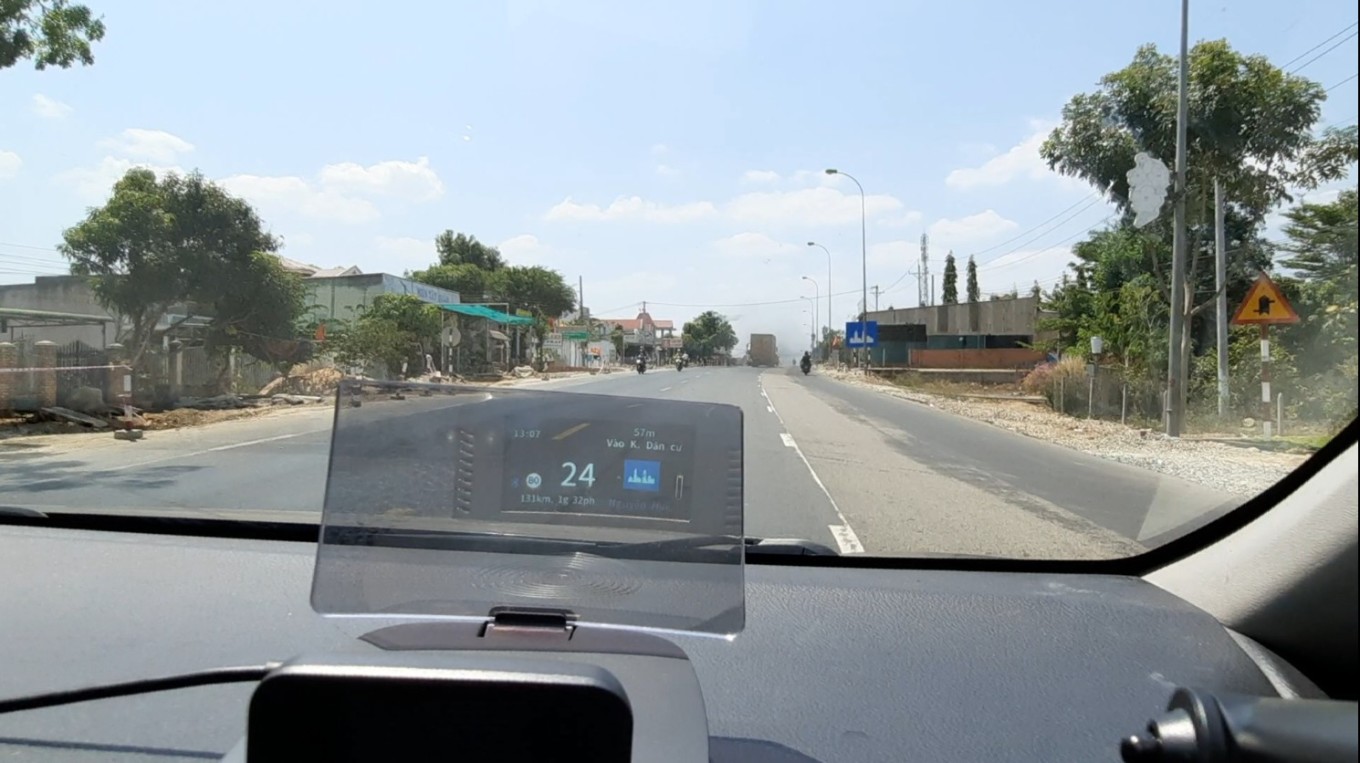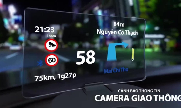 (Màn hình HUD hiển thị trên kính lái của Vietmap)