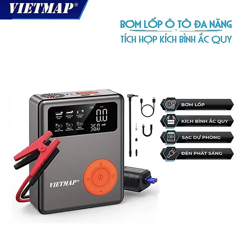 Sản phẩm cho phép bạn kích nổ xe khi gặp sự cố hết bình, tắt máy, mà không cần chờ cứu hộ hay nhờ câu điện từ xe khác.VIETMAP DK-MF139 còn có tính năng tự động tắt khi đạt đến giá trị áp suất lốp được cài đặt sẵn, giúp lốp của bạn luôn an toàn và ổn định, tiết kiệm thời gian, đồng thời kéo dài độ bền và tuổi thọ của lốp xe.