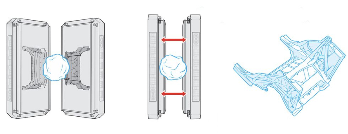Những phương pháp này bao gồm một công nghệ gọi là megacasting—hay gigacasting theo cách gọi của Tesla—được phát triển bởi Tập đoàn Idra của Ý. Tesla sử dụng công nghệ này tại nhiều nhà máy của mình, bao gồm cả cơ sở ở Texas, nơi sản xuất Model Y và Cybertruck.