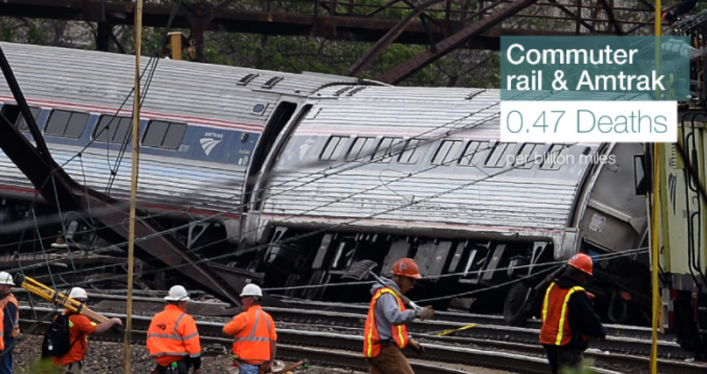 Có khoảng 0.24 người chết/1.6 tỷ km khi sử dụng phương tiện di chuyển là tàu điện (bao gồm cả tàu điện ngầm và tàu điện trên cao). Qua đó, chúng ta có thể thấy loại phương tiện này khá an toàn.