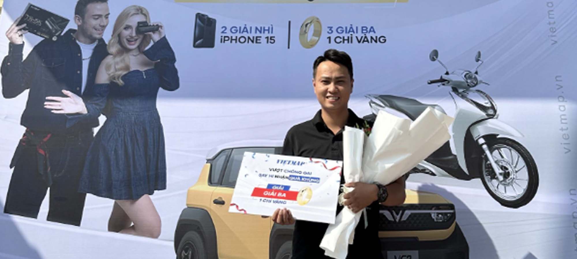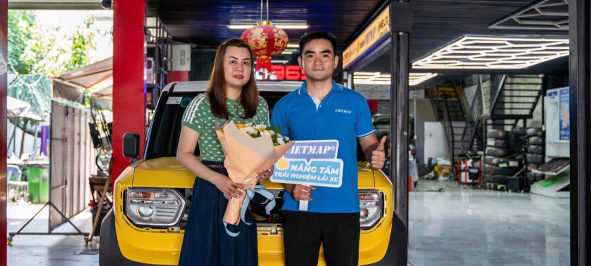 Vietmap trao giải đặc biệt - xe hơi Vinfast VF3 cho chị Lê Thị Nhật Thảo tại đại lý Hoa Mai Auto.