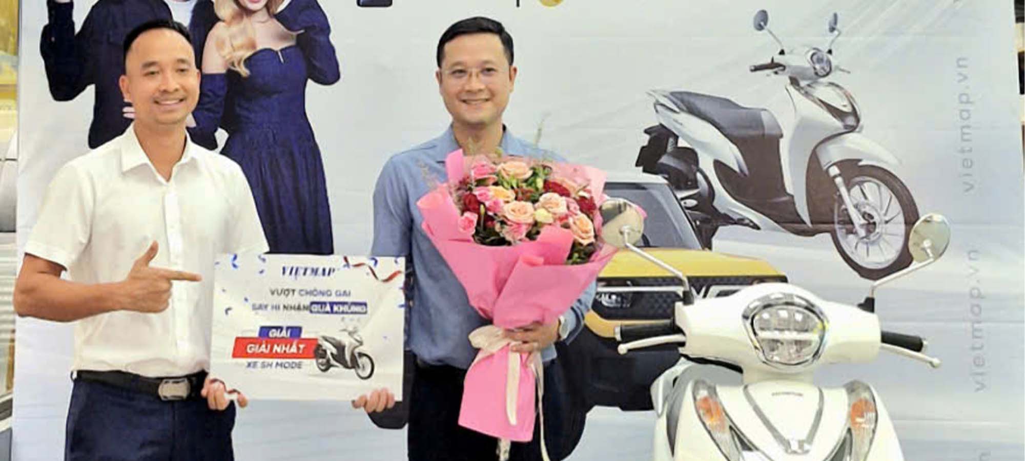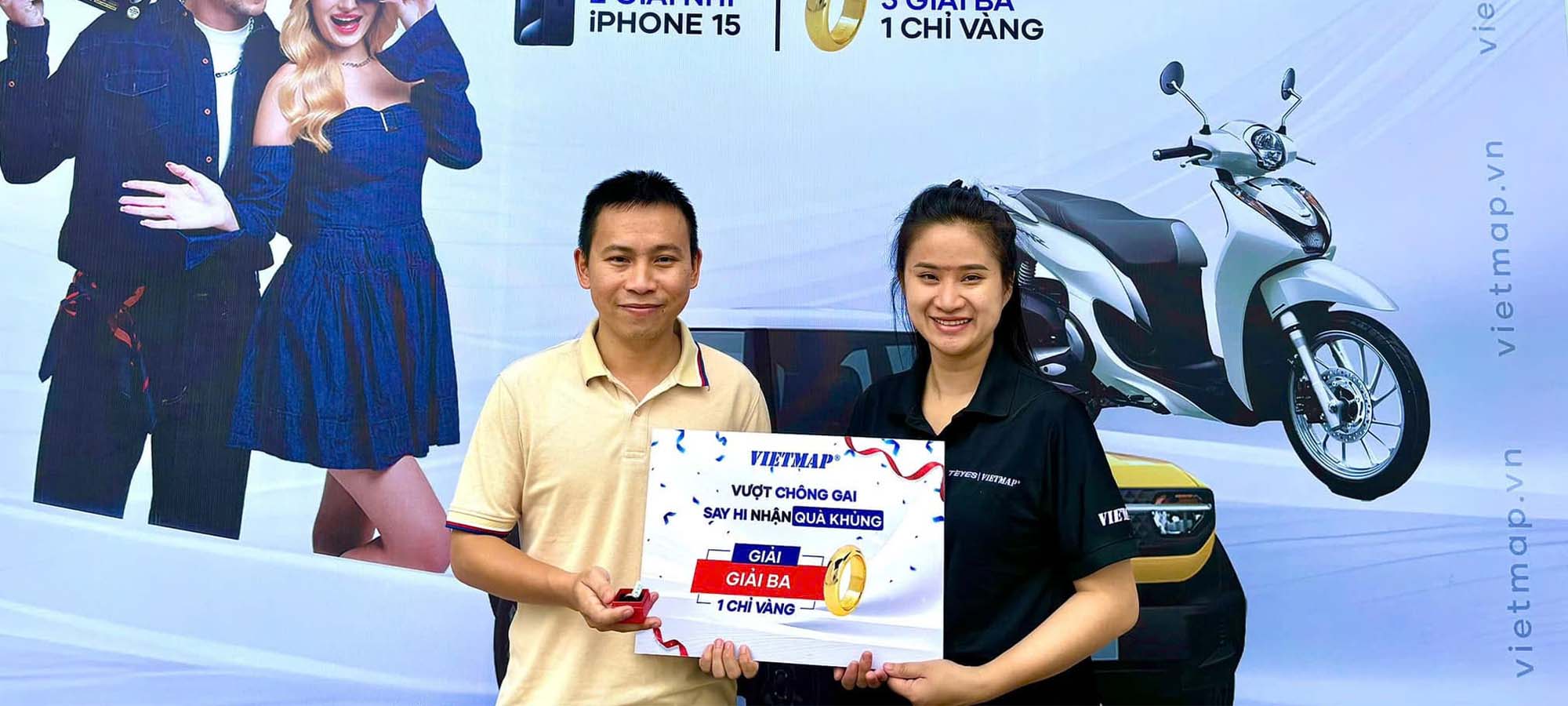 Vừa qua Vietmap đã tiến hành trao quà cho các khách hàng may mắn trúng thưởng trong chương trình khuyến mãi lớn nhất quý 3 năm 2024 “Vượt chông gai – Say hi nhận quà khủng” theo kết quả quay số được công bố trong trên Fanpage Vietmap vào ngày 17.10.2024.