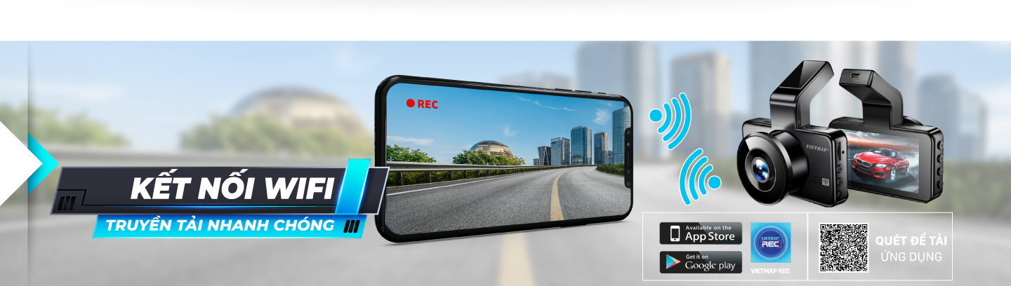 VIETMAP H9 trang bị công nghệ truyền dữ liệu thông qua kết nối WIFI không dây, giúp việc xem lại, lưu trữ chia sẻ video dễ dàng trên các thiết bị hệ điều hành Android, IOS thông qua ứng dụng VIETMAP REC.