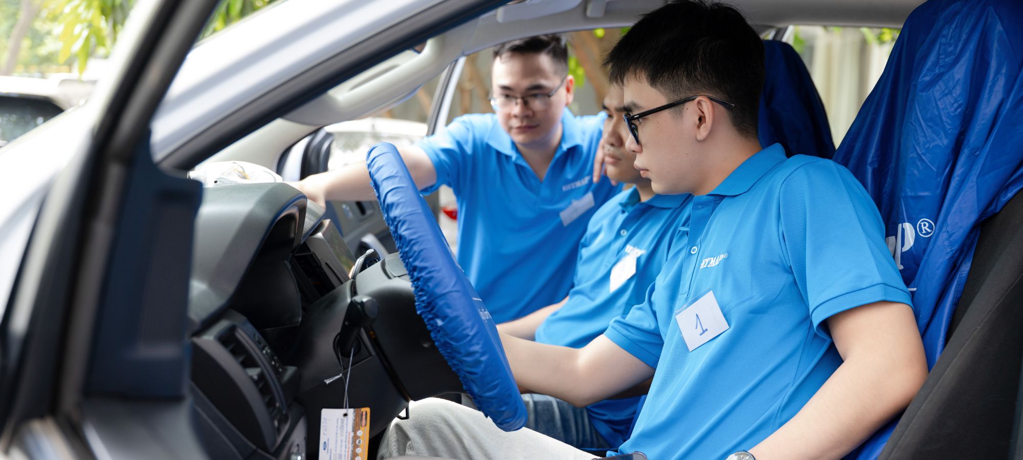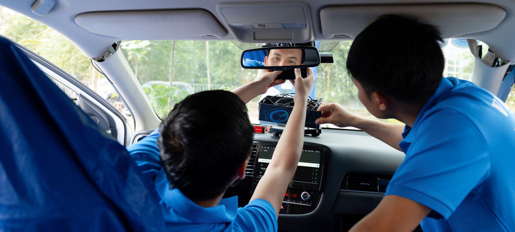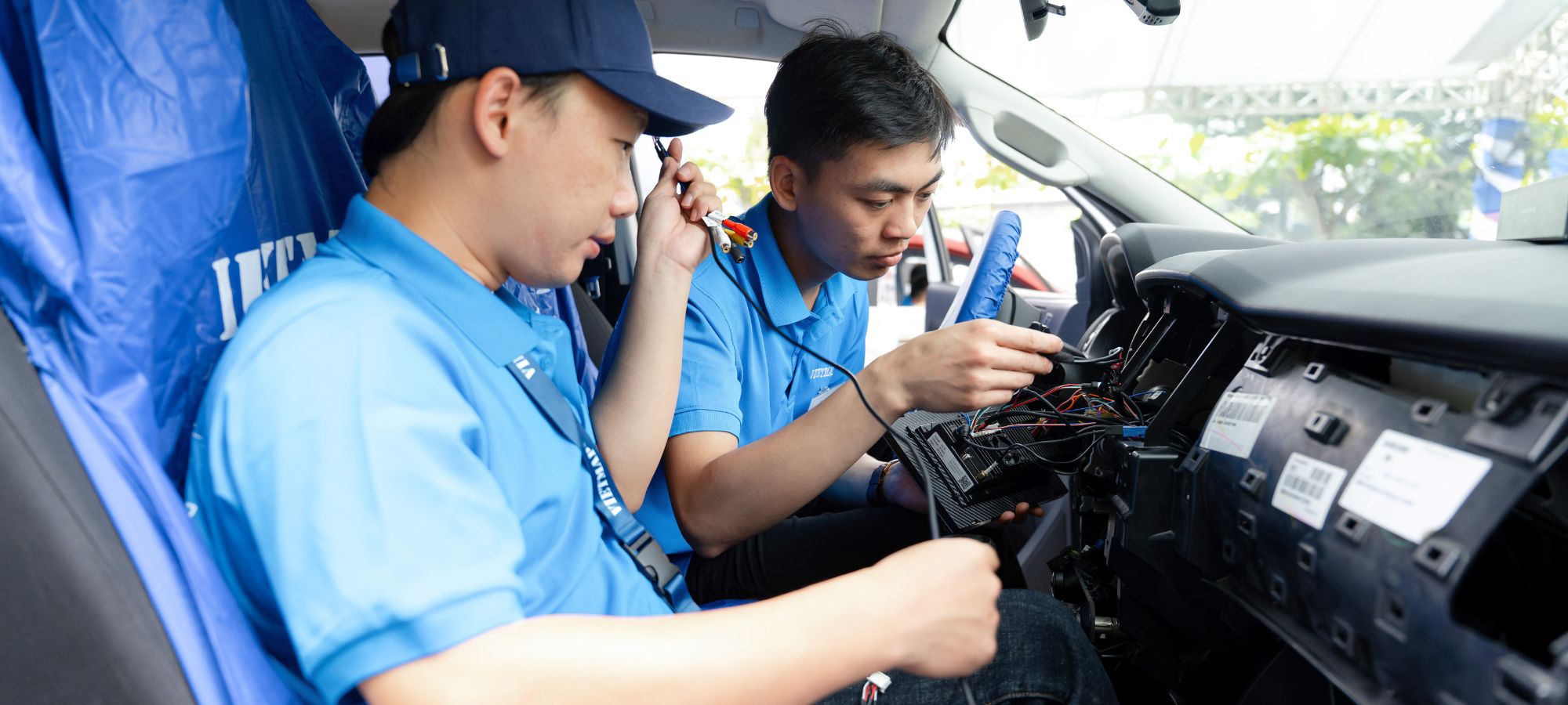 Ngay sau đó, các anh em kỹ thuật viên đã cùng nhau thực hành lắp đặt trực tiếp trên xe. Mỗi thao tác, mỗi tình huống thực tế là cơ hội quý báu để rèn luyện kỹ năng và xử lý linh hoạt các yêu cầu kỹ thuật, đảm bảo chất lượng dịch vụ đạt chuẩn.