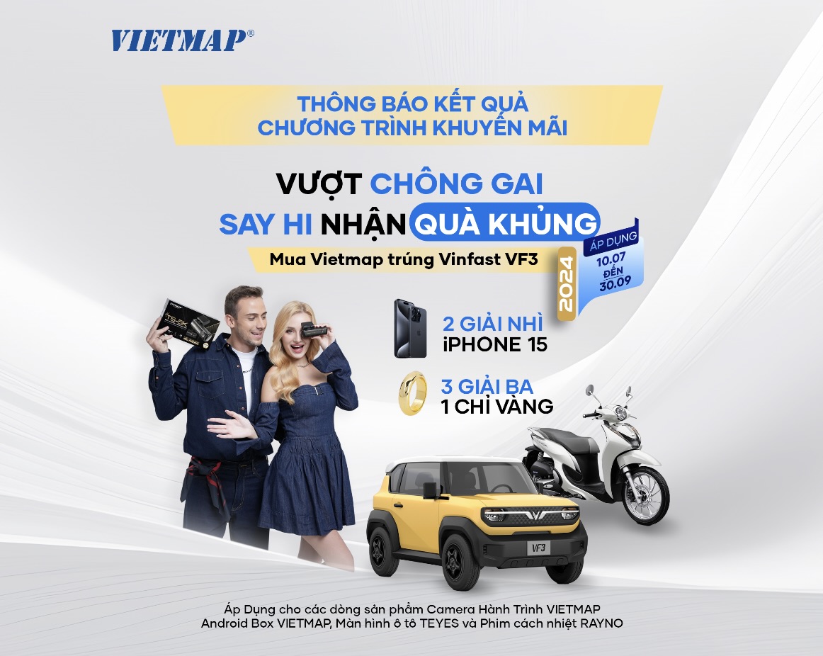 Chương trình “Vượt ngàn chông gai – Say hi nhận quà khủng” được triển khai từ ngày 10/07 đến 30/09/2024 dành cho tất cả các khách hàng mua hàng tại hệ thống đại lý Vietmap toàn quốc với các sản phẩm là Camera hành trình Vietmap, Android Box Vietmap, Màn hình ô tô Teyes và Phim cách nhiệt Rayno. Và kích hoạt bảo hành điện tử hợp lệ cho sản phẩm tại đại lý từ ngày 10/07 đến hết ngày 14/10 sẽ được tham gia quay số trúng thưởng.