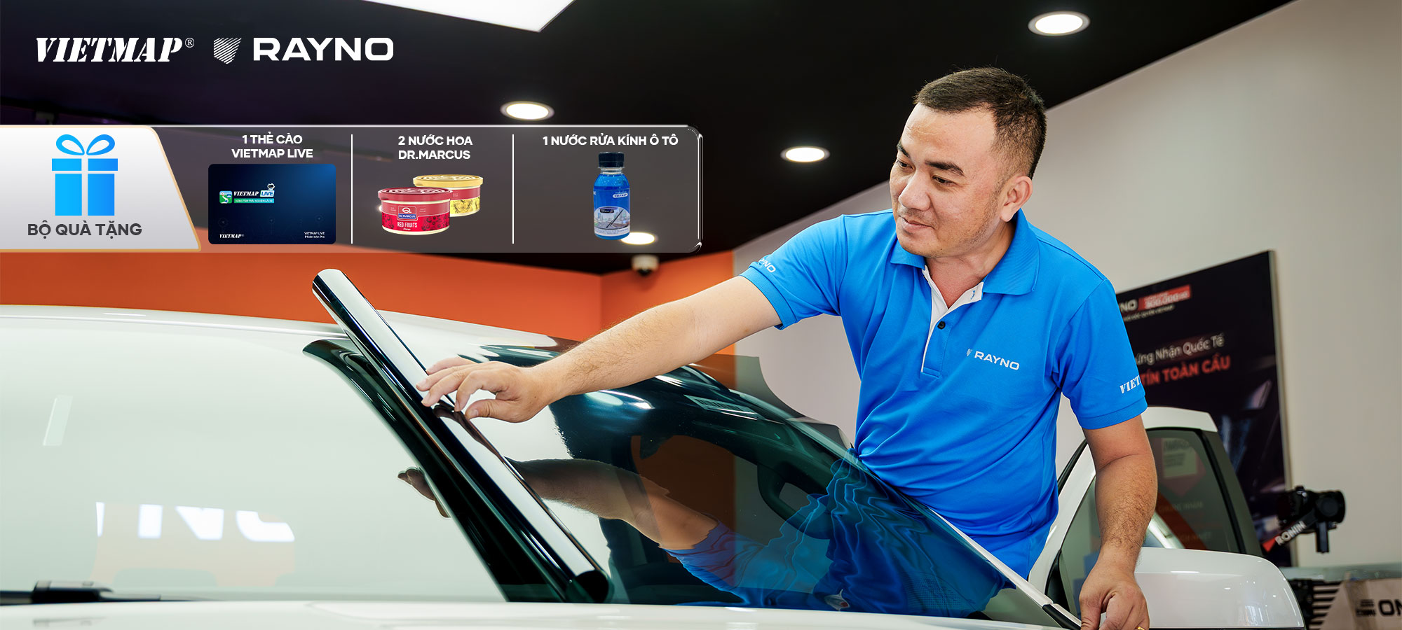 Khách hàng dán phim cách nhiệt Rayno tại hệ thống đại lý chính hãng Vietmap trên toàn quốc có cơ hội nhận tổng ưu đãi lên đến 32%, cùng nhiều quà tặng kèm trong chương trình diễn ra từ ngày 1/4 đến 31/5/2026.