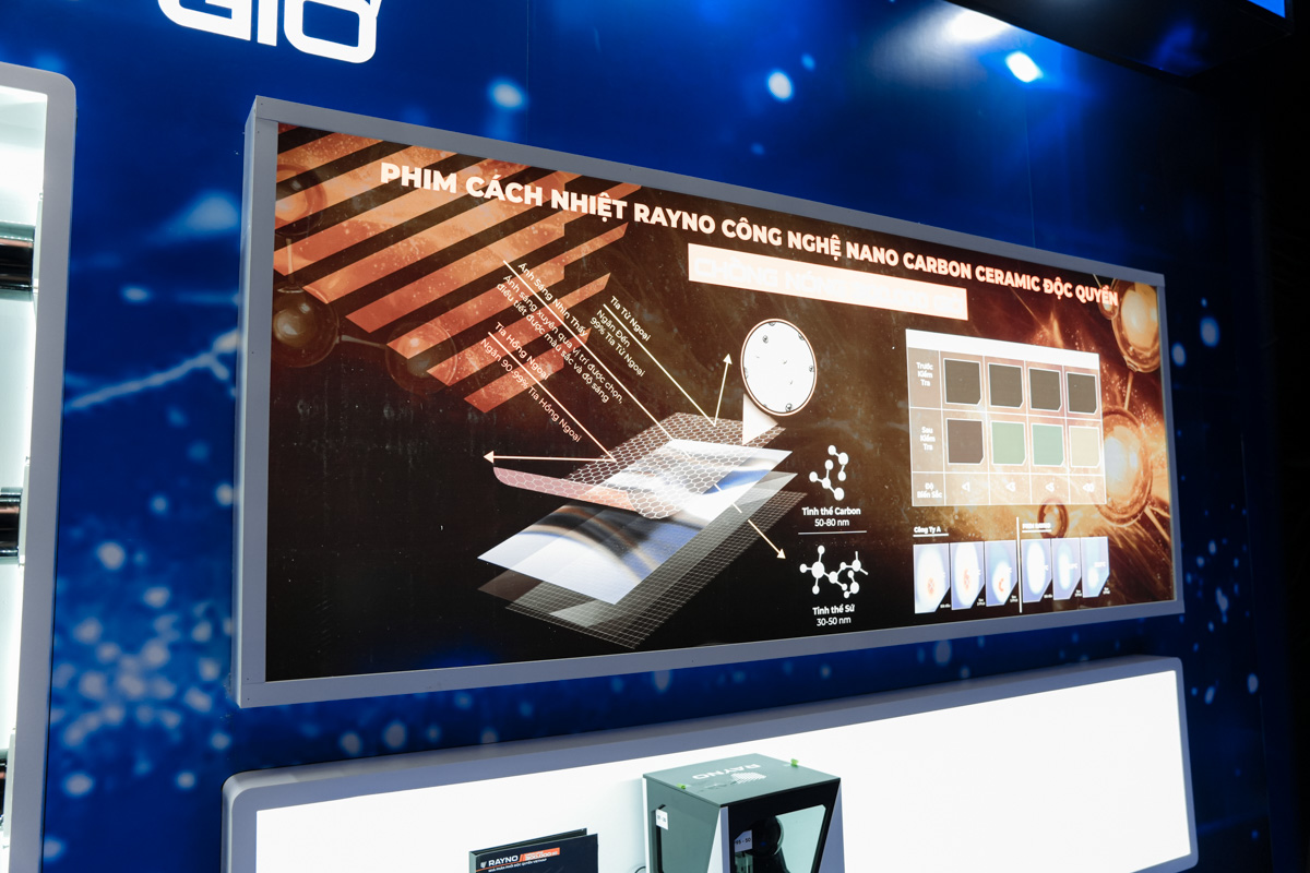 - Công nghệ Nano Carbon Ceramic, chống nóng 300.000 giờ: Đây là công nghệ cách nhiệt được phát triển đầu tiên trên thế giới bởi công thức độc quyền từ RAYNO. Với sự kết hợp từ các hạt Carbon kích cỡ Nano cung cấp độ ổn định màu sắc hàng đầu mà không làm giảm độ trong suốt, và các hạt Ceramic với kích thước Nano bao bọc cung cấp độ bền lâu dài và khả năng cản nhiệt xuất sắc. Là một bước tiến đột phá trong ngành công nghiệp cách nhiệt, mang lại hiệu suất cách nhiệt vượt trội.