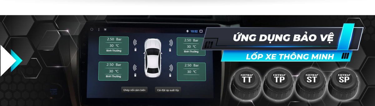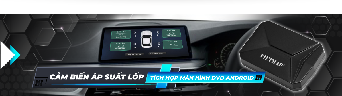 VIETMAP V1A giải pháp theo dõi thông tin nhiệt độ và áp suất lốp xe tích hợp trực tiếp với màn hình DVD Android xe với nhiều tính năng hữu ích :