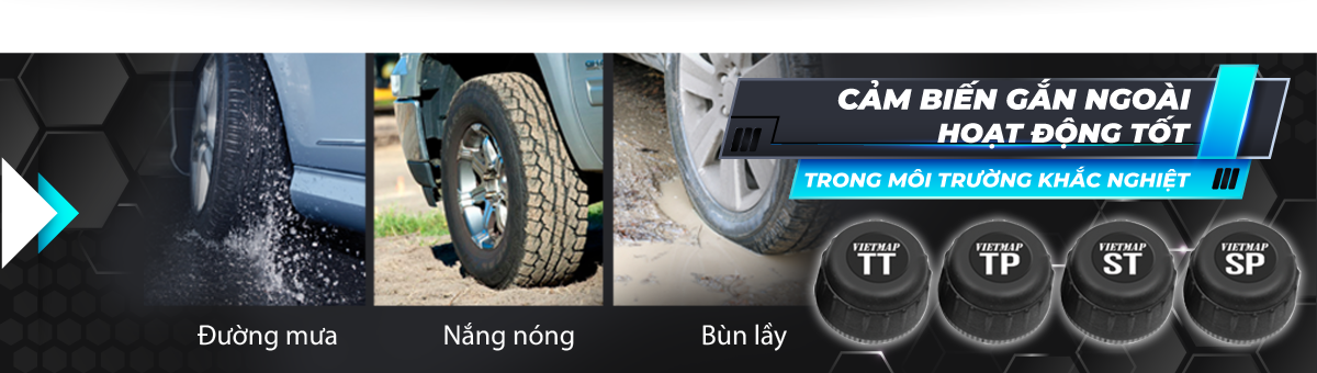 áp suất lốp VIETMAP V1A giúp kiểm tra nhiệt độ và áp suất lốp liên tục đồng thời góp phần tiết kiệm nhiên liệu ở mức tối đa.