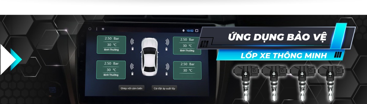 VIETMAP V1Ai giải pháp theo dõi thông tin nhiệt độ và áp suất lốp xe tích hợp trực tiếp với màn hình DVD Android xe với nhiều tính năng hữu ích :