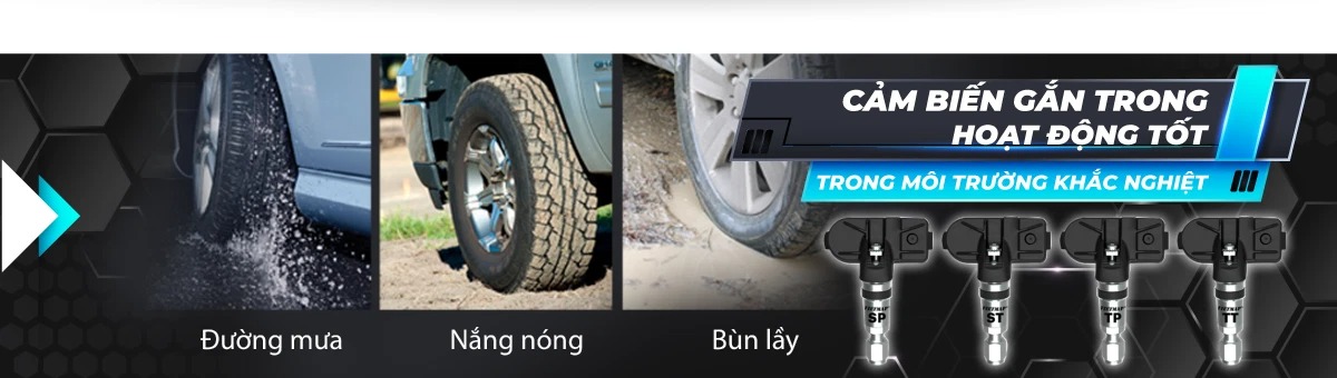 Cảm biến áp suất lốp gắn trong TPMS VIETMAP V1Ai được thiết kế gắn trực tiếp vào van xe với chip xử lý thông minh Freescale công nghệ từ Đức giúp bộ cảm biến hoạt động tốt dưới mọi điều kiện thời tiết kể cả nắng nóng, trời mưa hay bùn lầy.