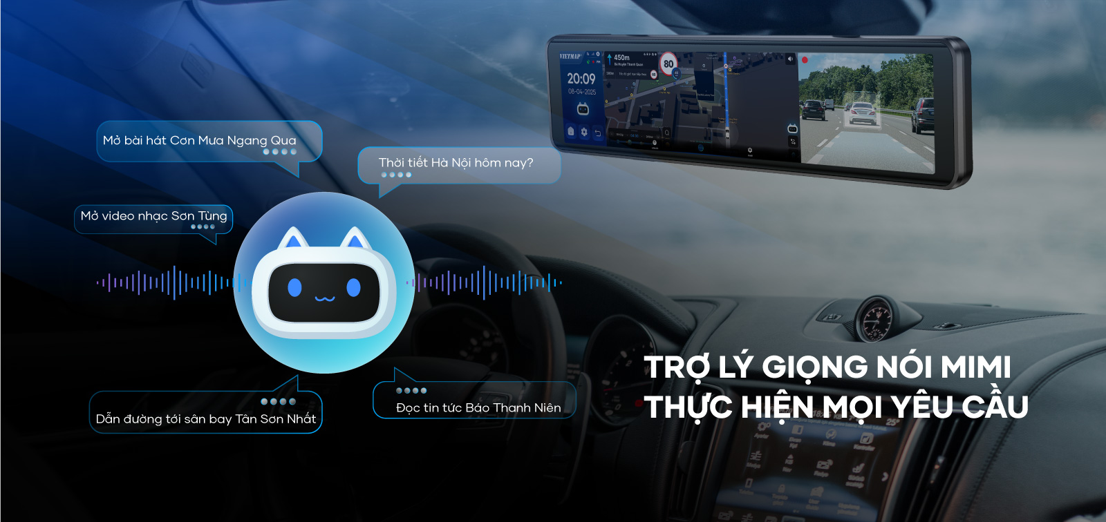 VIETMAP V740 tích hợp trợ lý giọng nói MIMI AI, cho phép điều khiển thiết bị bằng giọng nói như: