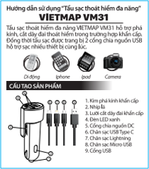 VIETMAP VM31 với thiết kế dây nguồn thông minh 3 TRONG 1 hỗ trợ tương thích nhiều chuẩn kết nối thiết bị khác nhau: