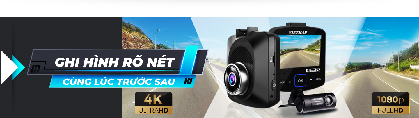 VietMap C62S được trang bị camera trước độ phân giải Ultra HD 4K kết hợp cùng camera sau gắn trong Full HD 1080p với cảm biến hình ảnh Sony, ghi lại toàn bộ hành trình xe trước sau rõ nét cùng với thông tin tốc độ.