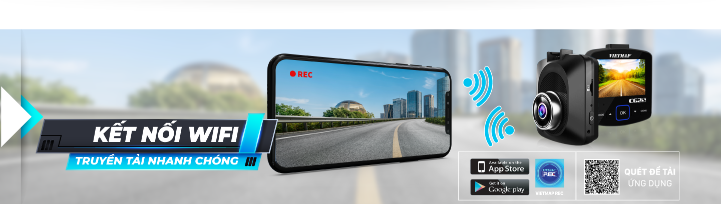 VIETMAP C62S trang bị công nghệ truyền dữ liệu thông qua kết nối WIFI không dây, giúp việc xem lại, lưu trữ chia sẻ video lên mạng xã hội dễ dàng trên các thiết bị HĐH Android, IOS.